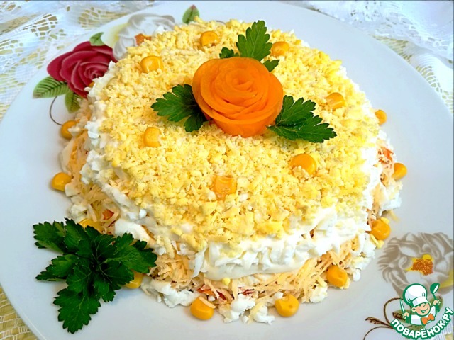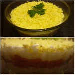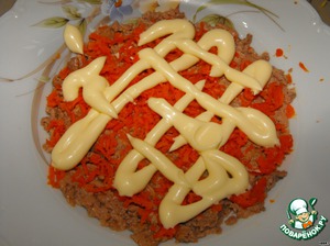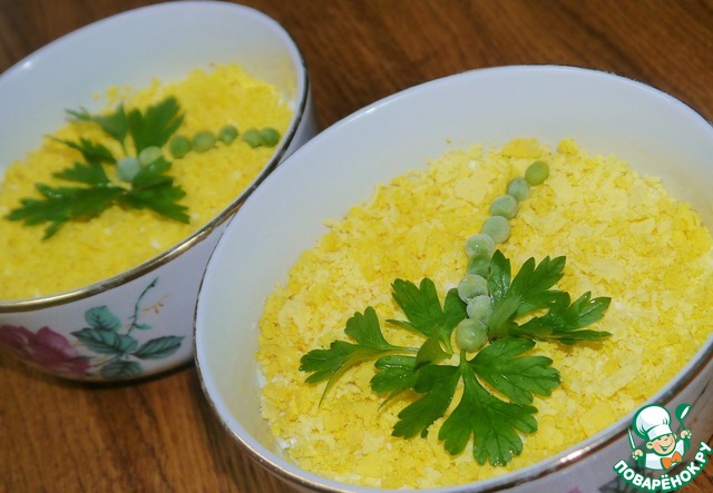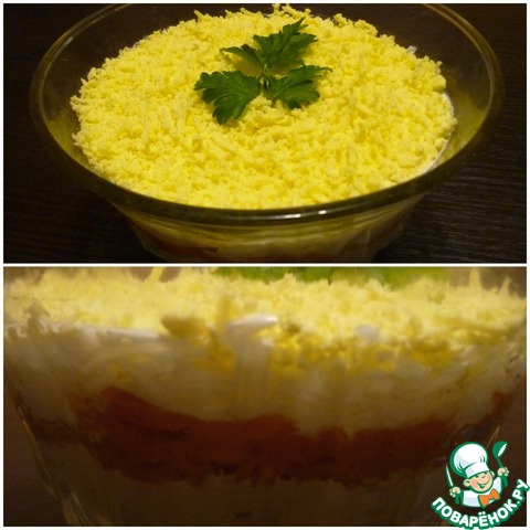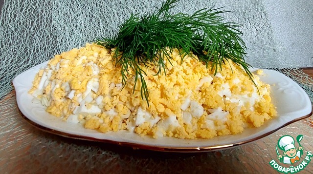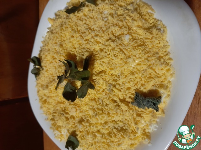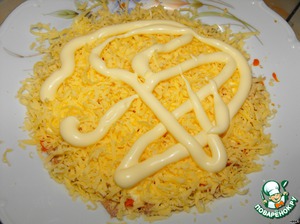 Другое дело, что в 4 шаге автор забыла написать про майонез поверх сыра (перед яичным белком).