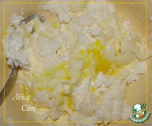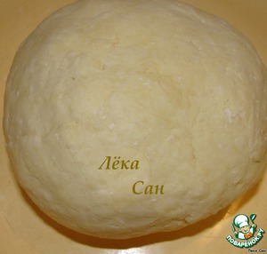 Смешать маргарин, творог, яйцо, соду, соль, добавить муку и..