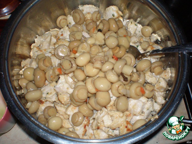 Рецепт «Куриное филе в сметане с маринованными шампиньонами»: