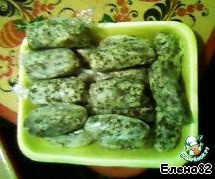 Ну что же, приступим. Мелко рубим всю зелень и тщательно перемешиваем ее с размягченным сливочным маслом, солью и специями. Полученную смесь делим на порции размером с десертную ложку. Это наша будущая начинка, чтобы она совсем не растаяла, убираем пока ее в холодильник.