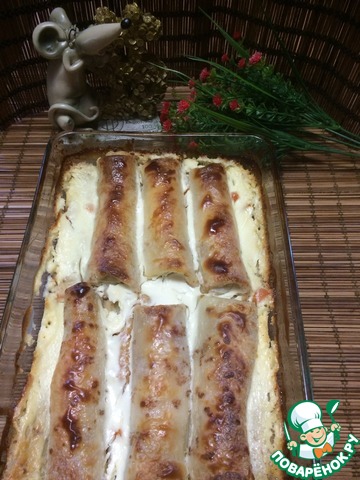 Посуду накрыть крышкой и поставить в духовку на 1 час при слабом нагреве. Налистники должны распариться, пропитаться сливочным маслом, но не пересохнуть.