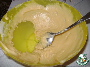 Тесто делаем достаточно жидким. Смешиваем сахар, мед, яйца, масло растительное. Немного взбиваем и нагреваем в микроволновке. Далее добавляем соду или разрыхлитель и понемногу всыпаем муку. Вымешиваем ложкой до густоты сметаны.