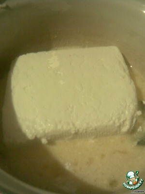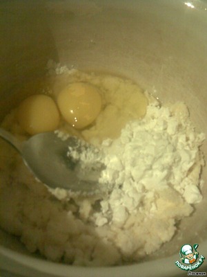 • Присоединяем творог и вымешиваем до однородности.