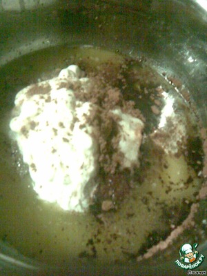 • Добавить к маргарину сахар, какао и гашеную соду. Сметану. Перемешать.