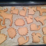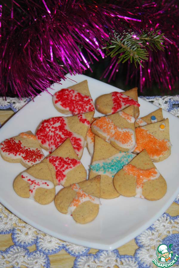 Рабочую поверхность стола присыпать слегка мукой, раскатать тесто в пласт толщиной 2-4 мм (чем тоньше раскатано тесто, тем хрустящее будет печенье). Вырезать фигурки.