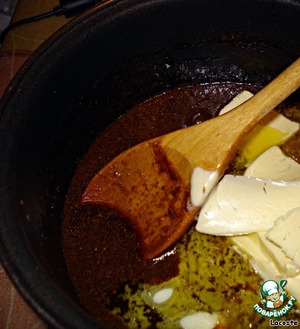 Снять с огня. Добавить кусочки сливочного масла и размешивать до полного его растворения.