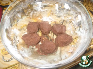 Да, в идеале какао надо просеять, но я этого не делала. А вот муку просеять с разрыхлителем, и замесить тесто (быстро, сильно не мять, но чтобы оно было однородным). Разделить на 6 колобочков и отправить в холодильник на час (можно больше, у меня 1,5 часа стояло, пока я гуляла с дочкой).