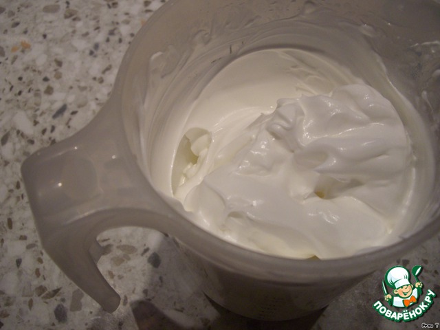 Затем взбить т о л ь к о белки до белой густой пены, постепенно досыпать сахарную пудру, продолжая взбивать,