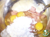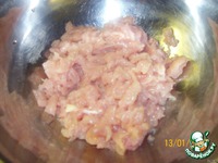 На каждый 0,5кг мяса идёт 3ст. ложки крахмала 3ст.л майонеза 3 яйца (сырые) 1ч.л горчицы. соль, перец, и любые любимые травы.