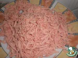 Третья начинка: колбаска, натёртая на крупной тёрке.