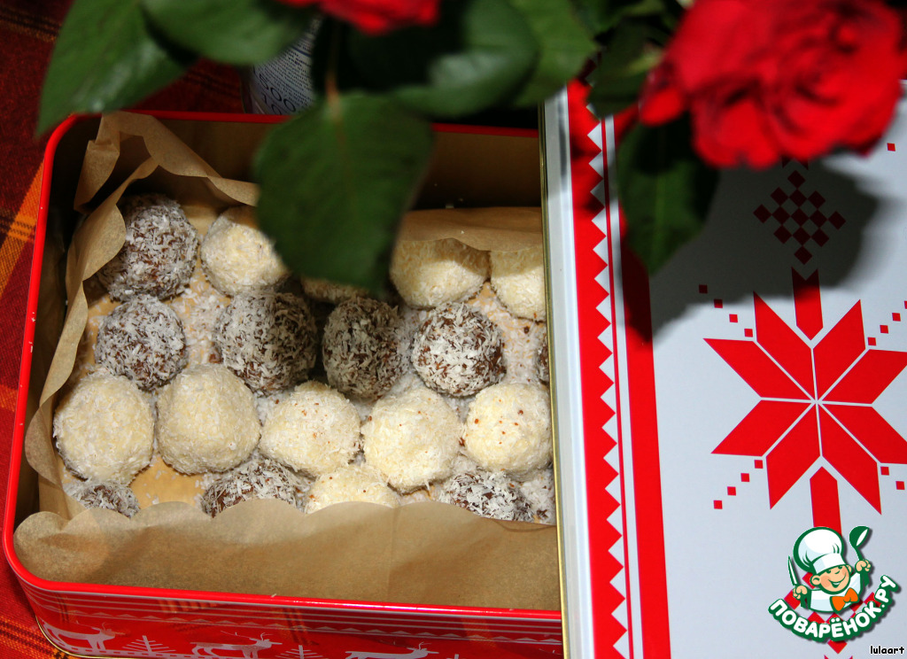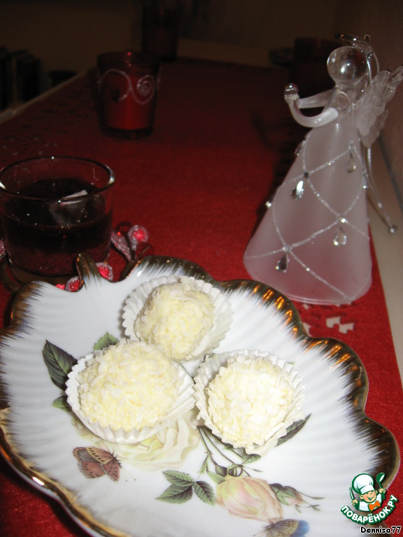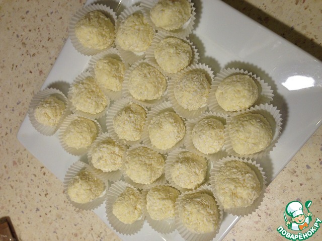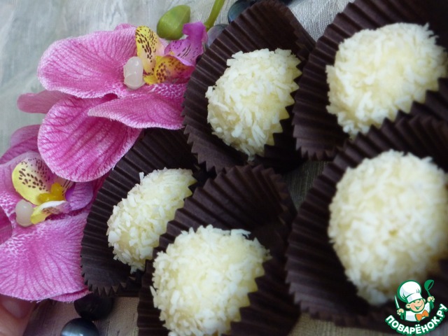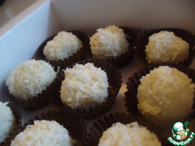 "Спасибо за рецепт. Конфеты очень понравились! Дополнительно использовала готовые тарталетки "орешки" - наполнила кремом + орешек покрыла шоколадом, после этого осыпала стружкой."