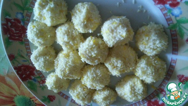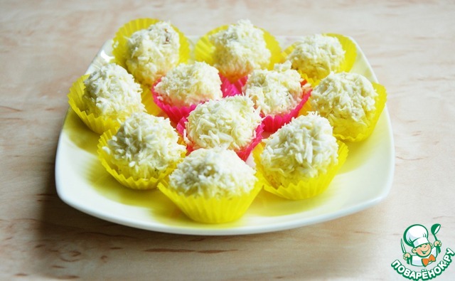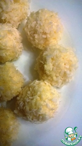 Получившиеся конфетки как следует обваливаем в стружке. -