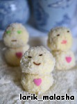 Пару слов о кокосовой стружке. Оказывается, она бывает двух видов - крупная и мелкая. На фотографии, если смогёте, разглядите - справа крупная, слева мелкая. Делать лучше с мелкой. С крупной не так эффектно и вкусно.