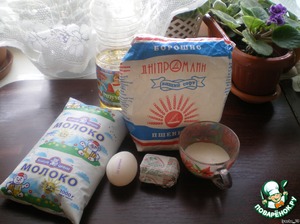Разведите дрожжи в молоке. Добавьте 1 яйцо, 3 ст.ложки подс.масла, щепотку соли, 3 стол.ложки сахара.