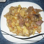 Готовое жаркое выкладываем в блюдо и украшаем зеленью. Картошку с удовольствием кушают дети!!!
