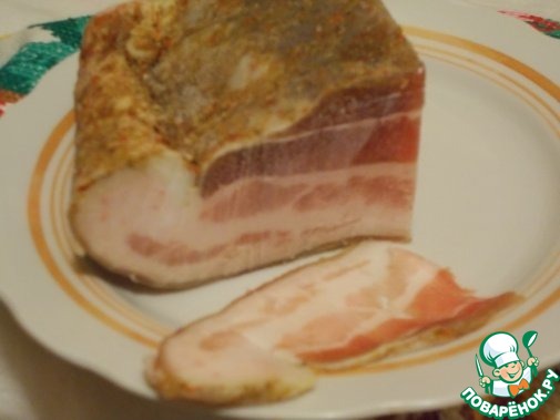 Затем достать грудинку из раствора, обсушить и каждый кусок обвалять в специях для сала. Положить в пакет и хранить в морозилке.