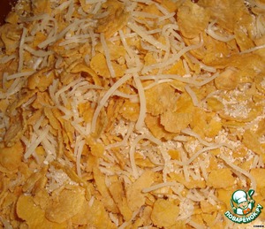 Кукурузные хлопья измельчим и смешаем с тертым сыром