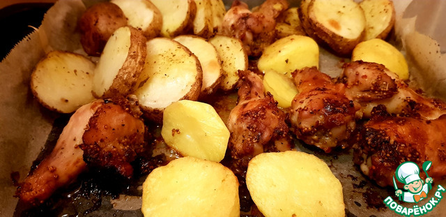 Блюдо понравилось,только крылышки быстрее приготовились,а картошку пришлось раскрыть,очень твердый сорт,все не пропекалась, вкусно,спасибо за рецепт!
