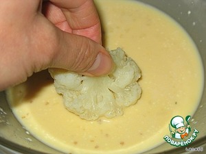 Соцветие цветной капусты макаем в нашу яичную смесь,