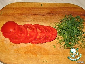 Помидор нарезать кружочками, укроп измельчить.