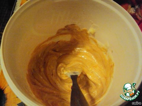 Приготовим соус для промазывания теста. Майонез смешать с томатной пастой, выдавить к ним через пресс чеснок и приправить карри и мускатным орехом. Всё перемешать.