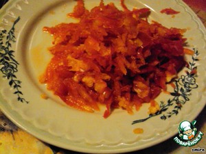 А перец натрём на крупной тёрке. После сольём накопившуюся жидкость. Она не нужна.