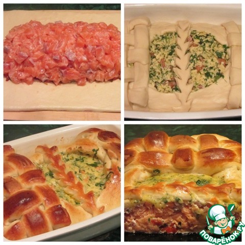 Наша семья еще молодая и устоявшихся традиций пока не имеет. Мы постоянно экспериментируем с блюдами и кухнями разных стран. Раньше «соображать» нужно было только на двоих, а сейчас уже и дочка подрастает и постепенно переходит на «нормальную» еду. Поэтому рецепт на конкурс «Семейное блюдо года» было достаточно трудно подобрать так, чтобы сочетались в нем и гармоничный вкус и польза (ну или хотя бы не вред) для дочурки. После долгих раздумий решили остановиться на пироге. Ведь пирог с давних времен занимал почетное место на русском столе. Даже есть такая поговорка – «Не красна изба углами, а красна пирогами». Вот и мы решили украсить свою «избу» пирогом с семгой и овощами. Получился очень нежный, сочный и необыкновенно вкусный пирожок, который пришелся по вкусу всей нашей семье. Попробуйте и вы!