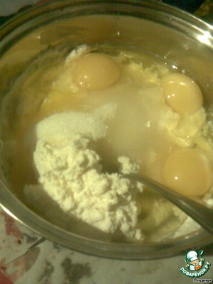 Добавить сахар, ванилин, соду, гашенную уксусом, и яйца.