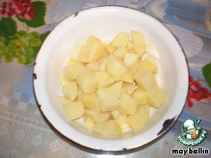 Картофель почистить и порезать кубиками.