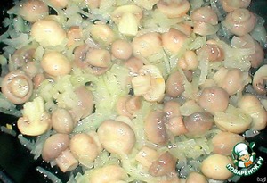 Репчатый лук мелко нарезать и обжарить с грибами.