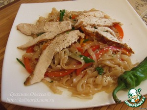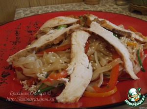 Рецепт «Рисовая лапша с овощами и курицей»: