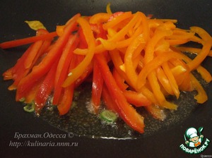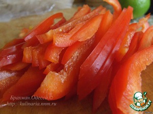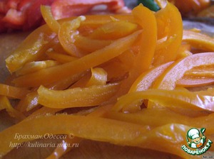 - А пока коптится, режем перцы. Тонкой соломкой. -