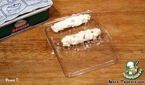 Сыр фета слегка нагреть, скатать свечи и тоже обвалять их в крекере. Убрать в холодильник.