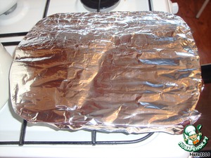 9. Затем накрываем пирог фольгой и опять в духовочку на 10 минут.