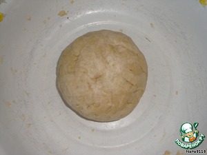 4. Форму смазываем маслом. Одну половину теста раскатываем в пласт толщиной 4 мм. Выкладываем на противень так, чтобы края теста немного свисали.