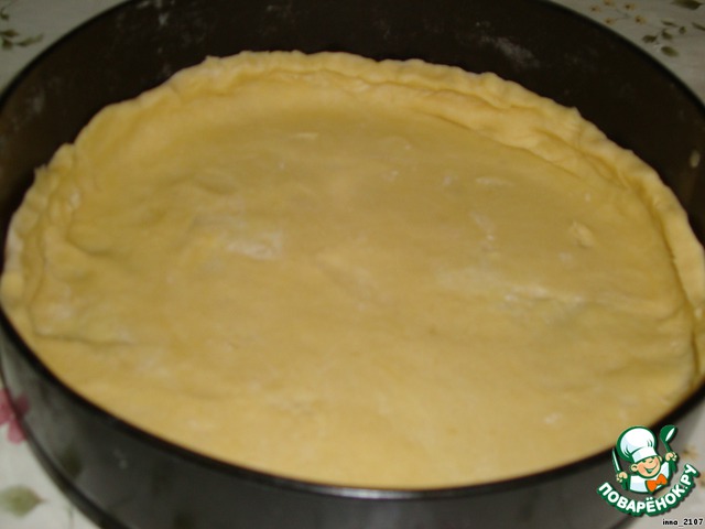 Раскатать тесто и выложить в форму, сформировав бортики.