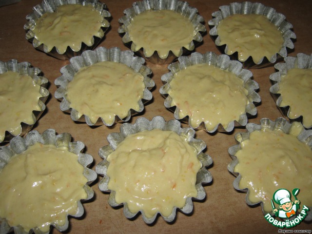 Смазанные маслом и посыпанные мукой формочки наполняем тестом примерно на 3/4 объема, отправляем в предварительно разогретую духовку (у меня духовка без терморегулятора, поэтому на средний жар) и забываем на 20 минут (но лучше через стекло за маффинчиками наблюдать))