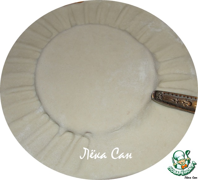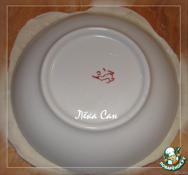 Затем накрываем блюдцем и обрезаем ножом лишнее.