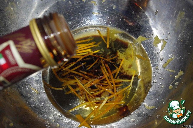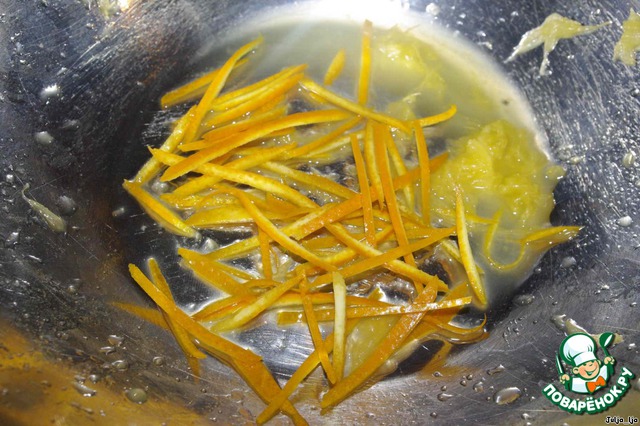 Добавим нарезанную соломкой цедру (немного - я, буквально, сантиметров 5 цедры срезала).