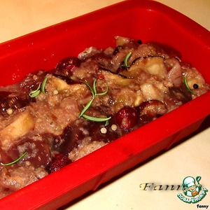 Террин из гусиной печенки с белыми грибами и вишней. Эту закуску я придумала сама к Новому году и выставляю еe на конкурс "Gorenje: новогодняя композиция"