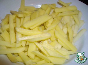 Пока варится мясо, чистим картошку, нарезаем тонкой! соломкой.