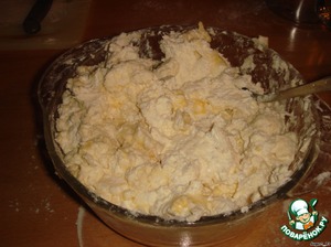 2. К творогу и маслу добавляем яйцо, муку, соль, все тщательно перемешиваем