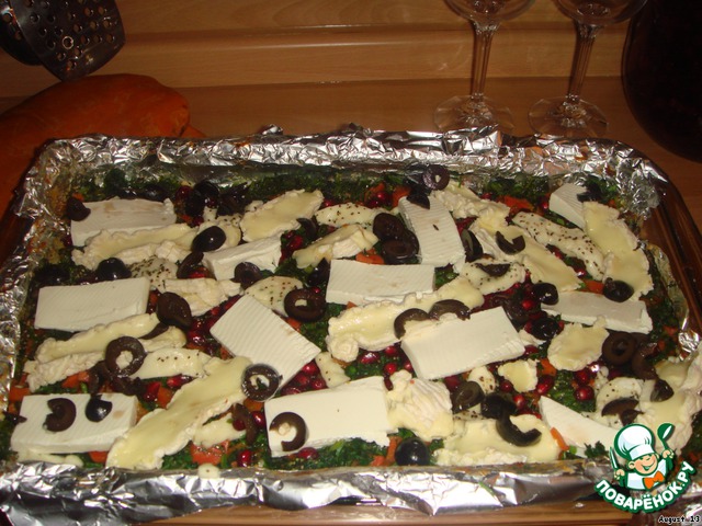3) сыр влаги не дал: брынза даже не ратопилась, моцарела расплавилась,но без воды, камамбер расплавился, но пропитал собой зелень...