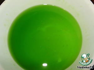 Делаем крем: развести 1 пакетик желатина и желе-киви 1,5 стаканами горячей воды. Остудить.