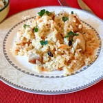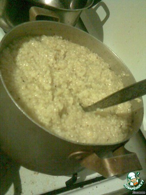 В курином бульоне отварить рис. Я ко всему аромату, что был, добавила еще зиру и куркуму для цвета.