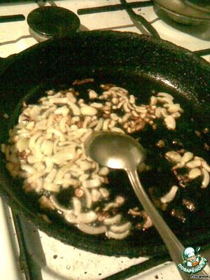 Лук измельчить (можно четверть-кольцами) и обжарить на растительном масле.