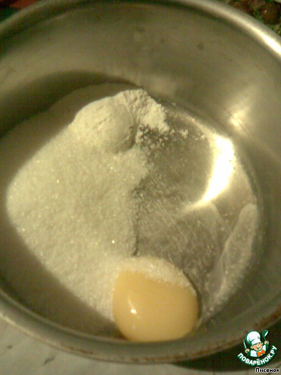 Для этого смешать желток, муку и сахар. -