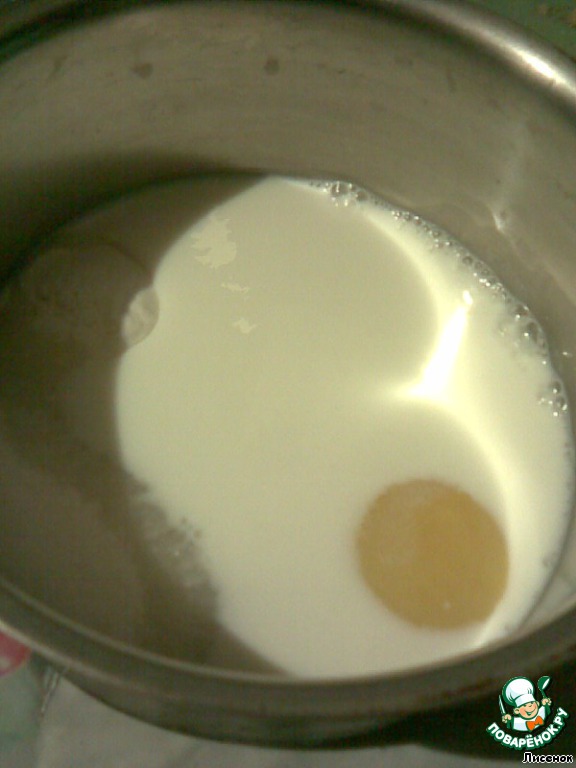 Влить молоко.