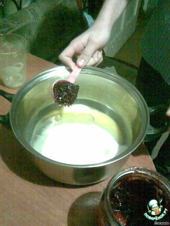 Добавляет варенье (у них из черной смородины)