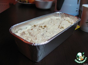 Прямоугольную форму застелить пергаментом, уложить в нее тесто.
